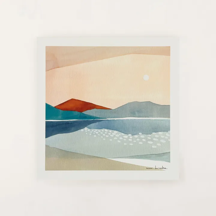 ※フレームは別売りです <デザイナープロフィール > ハシモトヒロコ / Hiroko Hashimoto 愛媛県出身、香川県在住の水彩画家。奈良芸術短期大学美術学科洋画コース卒業後、WEBデザイナーとしての経験を経て、2020年よりアーティスト活動を開始。水彩特有の滲みや透明感、色と色が干渉しあうことで偶発的に生まれる色の輪郭に魅了され、現在は地元を拠点に、個展を開きながら作品を発表している。 <About the Paper> 発色の良さと紙の風合いという相反する性質を高いレベルで両立させた高級印刷用紙で、FSC認証※も取得しているヴァンヌーボV-FSの最厚紙を使用。 ※FSC認証とは「森林の管理や伐採が環境や地域社会に配慮して行なわれているかどうか」を評価・認証し、そうした森林に由来する製品(適正管理された森林木材による製品)であることを証明するものです。運営は、NGOであるFSC(Forest Stewardship Council®:森林管理協議会 本部ドイツ)が行っています。 <サイズバリエーション> ・200×200mm ・300×300mm