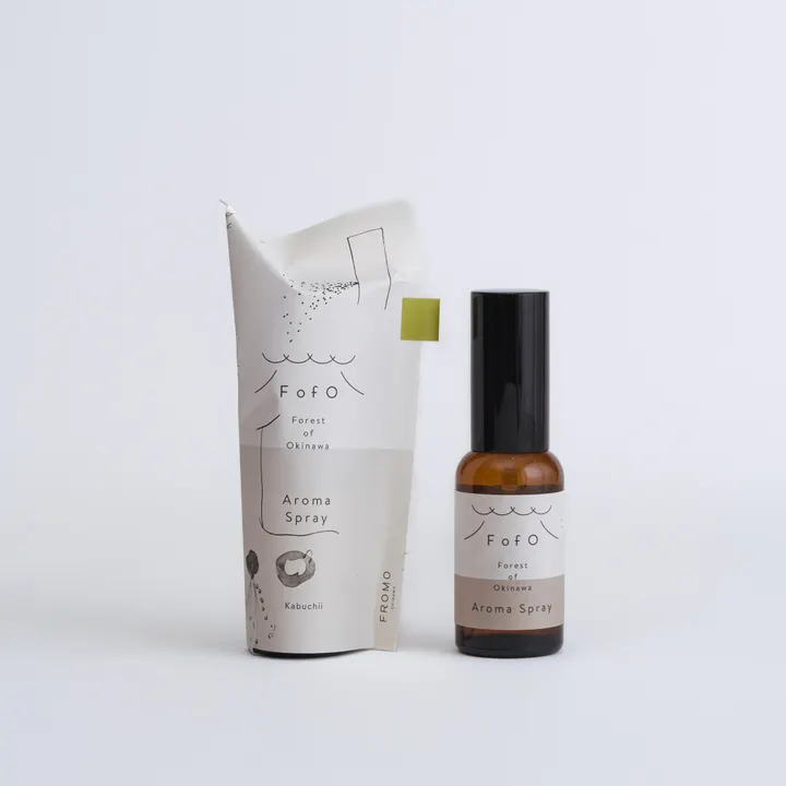 【カーブチーアロマスプレー】 生産量がとても少なく(沖縄でよく知られているシークヮーサーの約1%)沖縄でしかほぼ出まわらない希少な柑橘・カーブチーを使った、さわやかな香りが特徴です。さらっとしたテクスチャーで軽やかに香るので、季節や場所を選ばずにお使いいただけます。 FROMOのアロマスプレーは、ディフューザーなどの器具がなくても、ワンプッシュでいつでもどこでも手軽にアロマを楽しめます。持ち運びやすいコンパクトなサイズで、ボディミストやマスクの香りづけとしても使用いただけます。 *船便での発送のため、沖縄県外はお届けに約1週間かかります。 ● 使い方 ・スプレーボトルを、必ずよく振ってからお使いください。 ・リフレッシュミストとして、部屋などの空間に2~3回プッシュしてください。 ・ボディミストとして、首すじや手首などにシュッと吹きかけて、なじませてください。 ・マスクの香りづけとして、10cmほど離したところから内側または外側に、1〜2回プッシュしてください。乾いたことを確認してから、着けてください。 (マスクをしたまま、直接スプレーしないでください) ● おすすめの使用シーン ・汗をかいた後のリフレッシュにボディミストとして ・空間にかけて、香りを楽しみたいときに ・マスクの香りづけ ● こんな方におすすめ ・気軽に天然精油のアロマセラピーを楽しみたい方 ・スポーツや通勤で汗をかいたあとリフレッシュしたい方