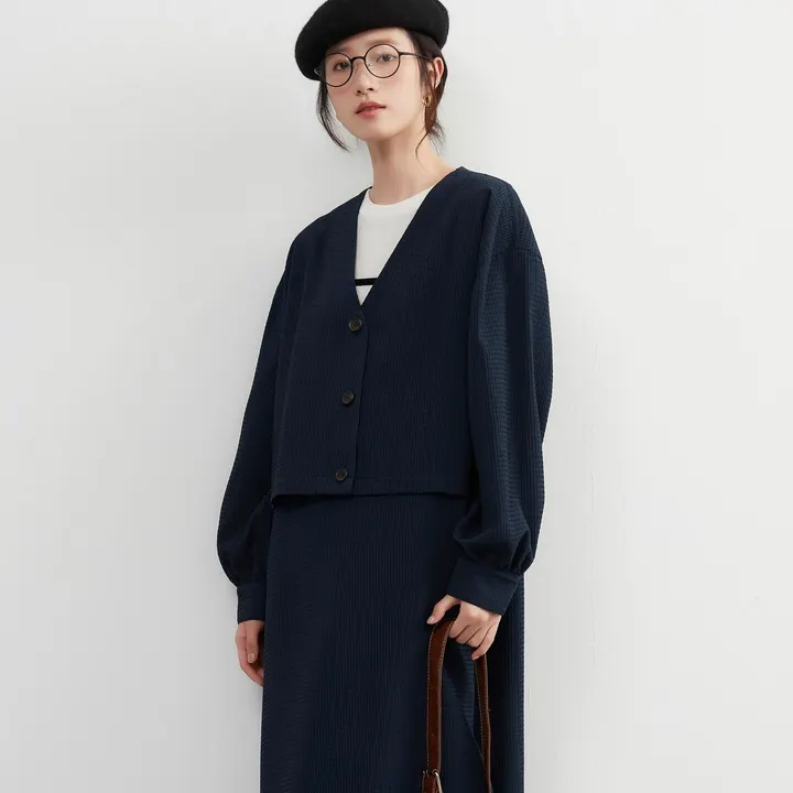 KNXU506・セットアップ商品ワッフル調生地のボレロ風ジャケット付きジャンパースカートセット FREE/NAVY
