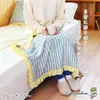 ブランケット フリル ストライプブロックプリント ピーチ