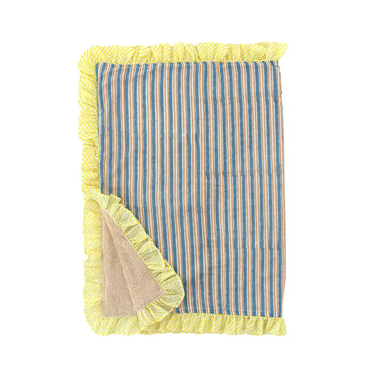 ブランケット フリル ストライプブロックプリント フレンチブルー