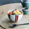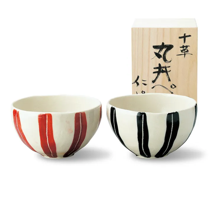 黒と赤の十草模様がそれぞれほどこされた丼ぶりです。 磁器土のため、丈夫で電子レンジにも使用できます。一つ一つ丁寧な手仕事で絵付け施釉された、現代のライフスタイルに合わせた和モダンのうつわ。 洗練されたシンプルで無駄のないデザインの食器は、そこにあるだけでテーブルがスタイリッシュに演出してくれます。 左右非対称なアンバランス(アシンメトリー)な形状が、ゆらぎと共にほっこりとしたシェイプを醸し出します。