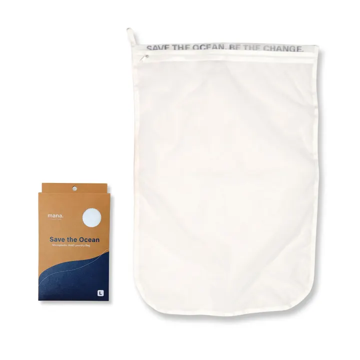 いま世界的な環境問題になっている「マイクロプラスチック」。一度海に流れ出てしまうと回収がむずかしく、海洋生物や人体におよぼす影響は未知数といわれています。 そんな「マイクロプラスチック」の約35%は、なんと私たちが毎日着ている服やタオルなどの化学繊維から発生!お洗濯の度に、繊維くずが排水溝から下水を通じて海に流出しているんです。 【「海」を守りながら、おしゃれも楽しみたい】あなたへ。mana.の洗濯ネットなら、マイクロプラスチックの原因となるマイクロプラスチックファイバーをキャッチして、海への流出を防ぎます。 ポイント1. 超微細な網目設計のネット マイクロプラスチックは、その名のとおり5mm以下の小さな粒状です。通常のネットは網目が大きく、うまくキャッチできないものがほとんど。でも、mana.の洗濯ネットは超微細な網目設計だから、どんな小さな繊維くずも逃しません。 ポイント2. お気に入りの衣類をきれいに長持ち 洗濯ネットを使うことで、衣類同士の絡まりや摩擦を抑えられます。衣類へのダメージを極力減らすことで、繊維くず防止にも効果的。毛玉やほつれも起こりにくく、お気に入りの衣類を長くきれいに保ち、おしゃれを楽しんでいただけます。 ポイント3. 機能性抜群のデザイン S・M・Lの3サイズ展開で、衣類の大きさに合わせてお使いいただけます。大きめでつまみやすいYKKジッパーで、衣類の出し入れもスムーズ。ファスナー部分には、海をイメージしたカラーグラデーションをあしらいました。吊るし紐付きで、お洗濯後の乾燥もラクラク◎ ※売上の一部は海洋環境保全への取り組みへ寄付いたします。