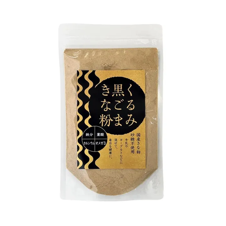 黒ごま+くるみ+大豆。それぞれの良いところを一度に、簡単に摂りいれることができる栄養満点の組合せ。体に大切な栄養がバランスよく含まれていますので、美容や生活習慣病予防にお子様からご年配の方までご家族皆様でお召し上がりください。 内容量:140g 原材料名:きな粉(大豆(国産))、黒胡麻、くるみパウダー 賞味期限:180日 栄養成分表示:(100gあたり)エネルギー/488kcal、たんぱく質/33.5g、脂質/32.4g、炭水化物/26.6g、食塩相当量/0.0g、カルシウム/270mg、鉄/6.2mg、葉酸/220μg、大豆イソフラボン/160㎎ アレルギー:大豆、ごま、くるみ お召し上がり方 ♦ヨーグルトにかけていただくのが一番美味しい ♦はちみつと一緒にトーストのトッピングとして ♦お餅や団子のまぶし粉として ♦お菓子作りの原料として ~大切な栄養成分~ 黒ごまにはセサミンやビタミンE、きな粉(大豆)にはイソフラボンやレシチンなどが含まれています。くるみにはナッツ類ではナンバーワンの含有量であるオメガ3脂肪酸の他、タンパク質やビタミンB1、食物繊維、マグネシウムといった栄養素がギュッと詰まっています。