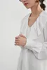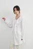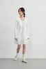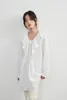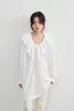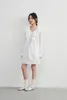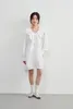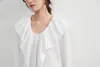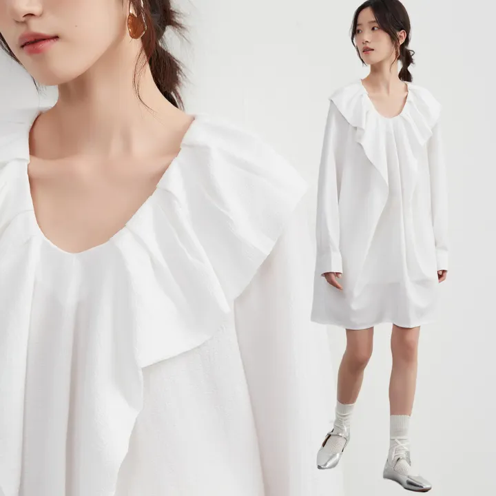 KNXO523・ほんのりモードな立体裁断ラッフルカラー長袖チュニックワンピ・ソフトタッチ素材たっぷり分量感フリル襟トップス WHITE/FREE