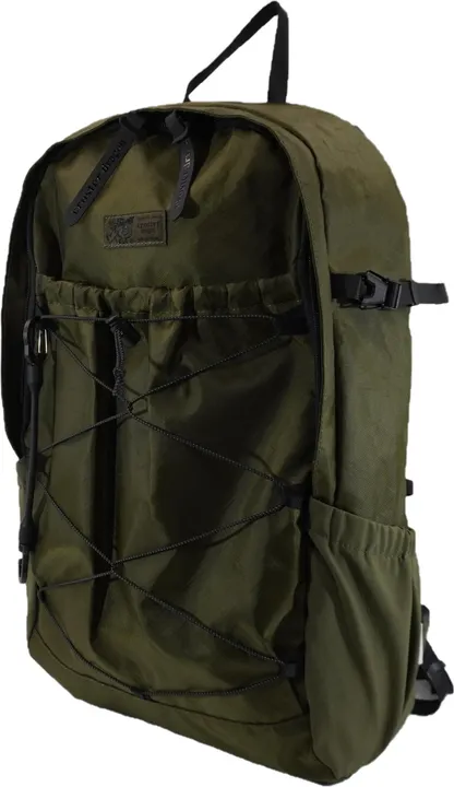 100%リサイクルのECOPAK(EPX200)を本体生地に使用。フロントのバンジーコードにはタオルや衣類を掛けることも可能。