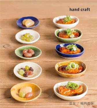 ほんの少し盛りつけし意外としっくりくる器が見つからない・・・ 小皿や小鉢より小さいもの・・・たいとき・・・そんな想いを今の暮らしの器にしました。楕円豆鉢、豆皿ともに手のひらに収まるサイズ。多くは盛りつけできません。でもこのサイズを探していた!という方に是非ともお使いいただきたい一品です。職人のハンドメイドの作品になります。ですので、ほんの少しずつ形がちがいます。手作りの器がもつ温かみを感じてくださいませ。