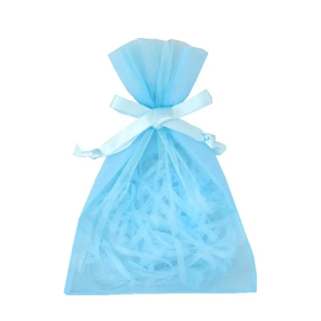 オーガンジーラッピング巾着ポーチSサイズ 片面オーガンジー裏面不織布ポーチ 40枚入り LS701-S1 ライトブルー