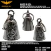アメリカ製ガーディアンベル社製ガーディアンベルです。 MADE IN USA アメリカ製 交通安全 魔除け 御守り ガーディアンベル アメリカのライダーの間には、事故や、転倒の原因は「道路にひそむ悪魔」によるいたずらだという伝説があります。悪魔は走る者に悪戯やトラブルを運んできます。このベルは美しい音色で悪魔たちを追い払うと言われ愛されています。そんな悪魔のいたずらを防ぎ、御守りとなるのが、守護者のベルという意味を持つガーディアンベル。 日本でも鈴の音(ね)は神道では魔除けの音と言われています。ピューター製の鈴でいい音色でガーディアンベルはデザインも様々あります。 またガーディアンベルにまつわる伝説として、プレゼントとして送られたベルの効果は、自分で手に入れたものの2倍になると言われています。 それゆえに彼氏・彼女・友達・家族へのプレゼントとしての人気も非常に高まっています。 シルバーアクセサリーのようにおしゃれに装着できて素敵な音色を奏でるガーディアンベル。 バイカー以外にも自転車や旅・交通安全のお守りとしてお使いいただけます。 カバン・ランドセル・キーホルダー・ペットの首輪等に付けてお使いください!! ※タイラップ等でバイクのフレームにも簡単に取り付けできます。 アメリカンモデルだけではなく、旧車ファン、レプリカライダーまで、さらにバイクだけでなく、自転車や車にもピッタリな御守りとなっています。 アクセサリーとしても人気で、アイディア次第で車体だけでなく、キーホルダーや鞄など、どこにでも付けておしゃれに楽しめます。