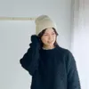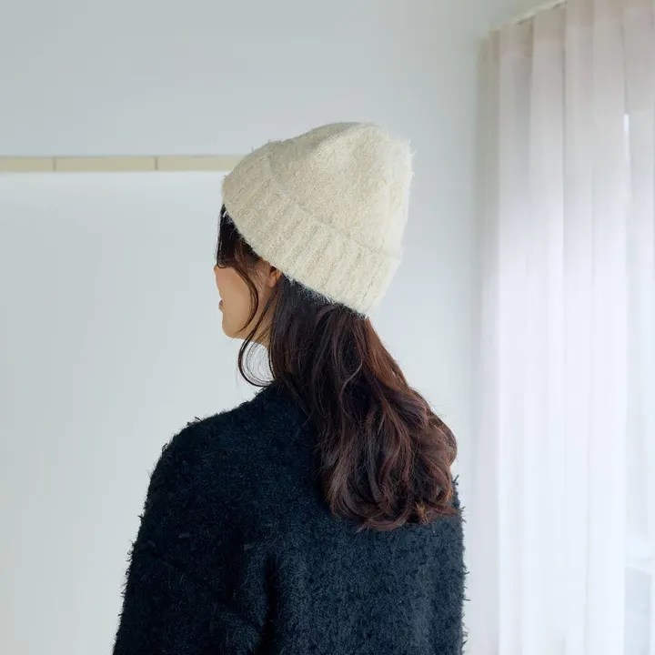 ツイード調に仕上げたリボンヤーンのニットキャップ IV(アイボリー)