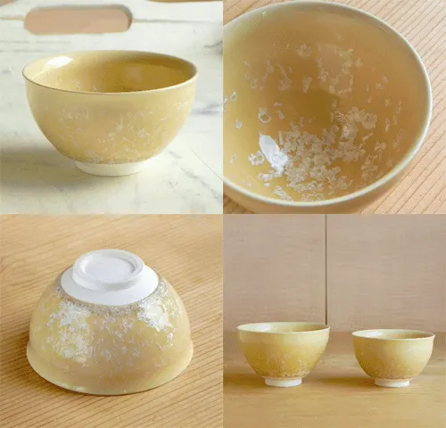 花紋の様に結晶が花開いた、品のある煎茶碗です。季節の和菓子や花茶など美しいお菓子を、より一層引き立てくれます。