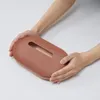 ツートーンデザインのソフトパックティッシュ専用ティッシュケース 下半分が透明になっており、さりげなくティッシュの残量を確認できます。 上半分のニュアンスのある素材とカラークリア素材のツートーンでオブジェのような装いです。 スリムなソフトパックティッシュにぴったりのケース。 適度な重みがあり、ケースが浮き上がらずスムーズにティッシュを引き出せます。 コンパクトなサイズ感は置く場所を選びません。 角のないフォルムは空間をやさしく演出します。 別売りのウェットティッシュケースとセットでお使いいただくことで統一感を出し、暮らしの質を高めます。 水に濡れても問題ない素材なので、洗面所やキッチンなどでも気兼ねなくお使いいただけます。 シンプルな構造なのでお手入れがしやすく、清潔な状態を保てます。 リビングや寝室、洗面所まで幅広くどんな空間にもなじみます。 残量が見えるさりげない機能性を兼ね備えた、お気に入りのアイテムと一緒にインテリア感覚で飾りたくなるデザインです。 お米のもみ殻を含むバイオプラスチックTEXaと再生ポリカーボネートを使用した環境に配慮したプロダクトです。 TEXaはお米のもみ殻の粒が見えて、陶器のようなマットでやさしい質感を実現。 透明感の美しい再生ポリカーボネートは自社の製造過程で出るロス品等をリサイクルしています。 サステナブル素材の特性上、粒感や色味のニュアンスに個体差があります。表情の違いをお楽しみください。 国内の自社工場で生産している日本製。 :: soemとは 大阪で100年続く業務用プラスチック製品メーカーが「愛着を持って長く大切に使っていただく」をコンセプトに展開するブランドです。 機能性と飾りたくなるような心に響くデザインに、長く大切に使っていただきたいという思いを込めています。