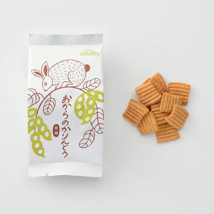 厳選した国産大豆のおから、 愛知県産小麦粉、粗糖で作った生地を、 圧搾一番搾りの菜種油で揚げました。 黒糖の穏やかな甘みがよく合う波形の「黒糖」、 ほのかな塩味が後を引く半わっか形の「塩」の2種類。 カリッとかための食感を楽しみながら じっくりと噛みしめて味わっていただきたい 素朴なおからかりんとうです。
