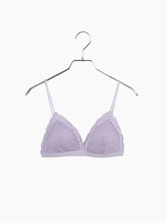 オーガニックコットンで紡がれた繊細なレース生地が上品な印象のブラトップ。 メッシュならではの軽やかで優しくバストをつつみこむ着心地は、ノンワイヤーでストレスフリー。 アンダーバストのゴムもオーガニックコットンを使用し優しい肌触り。 お部屋でのリラックスタイムにはもちろん、休日のお出かけにもおすすめです。 SkinAware では「ボタニカルダイ(植物染め)」によってオーガニックコットンの特性を損なわず、様々な色を表現しています。 ボタニカルダイとは、 植物の花、葉、果実などから抽出した染料をタンパク質で生地に吸着させ、植物本来の持つ鮮やかな発色を実現した新しい染色技術。 自然とサイエンスを融合させたハイブリッドな染色方法は、植物が持つエネルギーを感じることができ、リラックスやヒーリング効果も期待されています。 カラーは、神話やシェイクスピア文学に登場し、愛の花として知られているパンジーで染めた「パープル」。 ・バストパット取り外し可能 ・肩紐にアジャスター付き ショーツ WLS011B とセットアップが可能です。