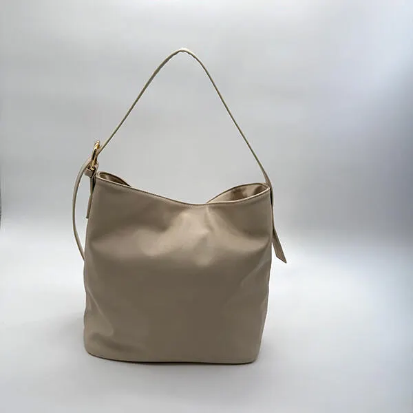 人気のホーボー型のワンショルダーバッグ。 ショルダーハンドルの長さを調節でき、斜め掛けも可能です。 柔らかく肌なじみのいいソフトな合成皮革を使用しており、体にフィットして持ちやすい素材です。通常柔らかい素材のビッグバッグだと中で持ち物が散らかってしまいますが、ペットボトルポケットなど多彩なポケットが付属しているため整理整頓して入れられます。 A4サイズが入るため、通勤や通学などのデイリーユースにぴったり。<br>大きなバッグならではの使いにくさを解消したバッグです。 裏地には再生ポリエステルを使用しています。 ※ご覧頂いている商品の写真につきましては、お使いの環境(モニター、ブラウザ等)の違いにより、色の見え方が実物と若干異なる場合がございます。予めご了承ください。
