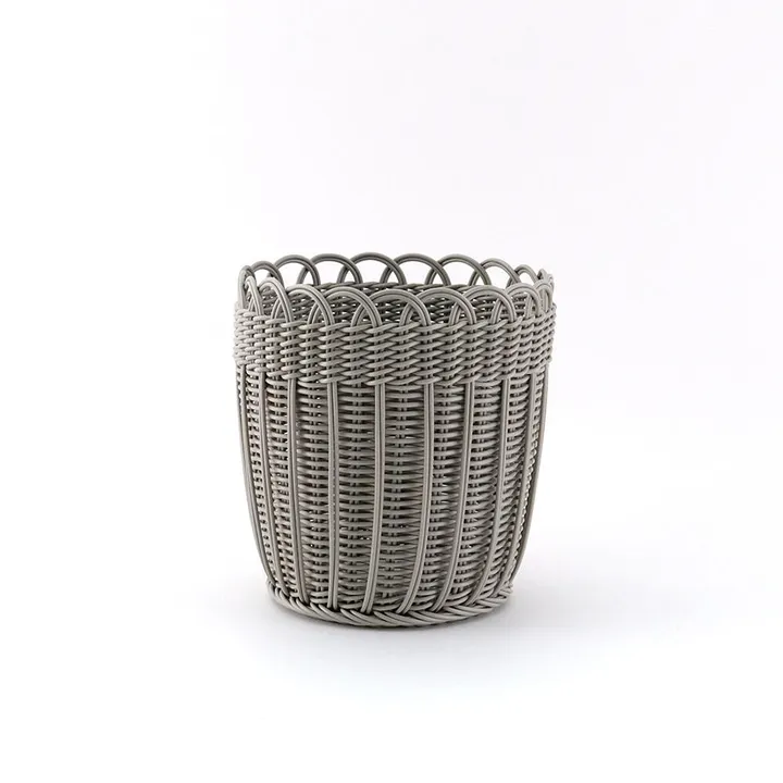 水洗いができるPPバンドを使ったプラントバスケットです。 Lサイズには7号鉢、Sサイズには5号鉢が入るサイズになっています。 Lサイズはゴミ箱として使うことも可能です。 水がかかりやすいキッチンや洗面周りの収納としても使っていただけます。