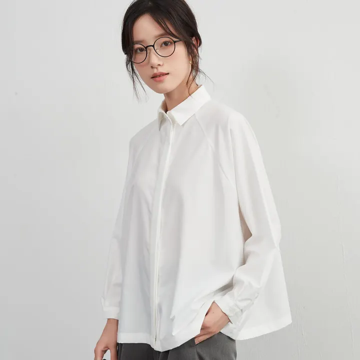 KNXC511・シワ防止・長袖ラグランワイドスリーブ・レディースシャツ・オフィスカジュアル・ミニマムシンプル定番 WHITE/FREE