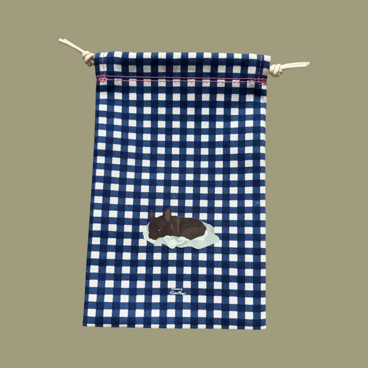 【縦長巾着】オリジナルイラスト スマホも入るサイズ わんこ巾着 フレンチブルドッグ