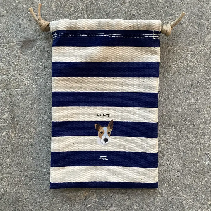 【縦長巾着】オリジナルイラスト スマホも入るサイズ わんこ巾着 ジャックラッセルテリア / ボーダーブルー