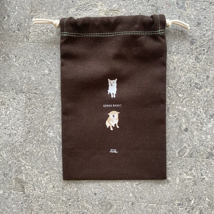 【縦長巾着】オリジナルイラスト スマホも入るサイズ わんこ巾着 柴犬