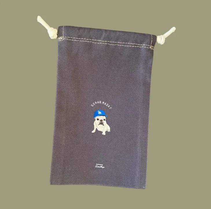 【縦長巾着】オリジナルイラスト スマホも入るサイズ わんこ巾着 フレンチブルドッグ