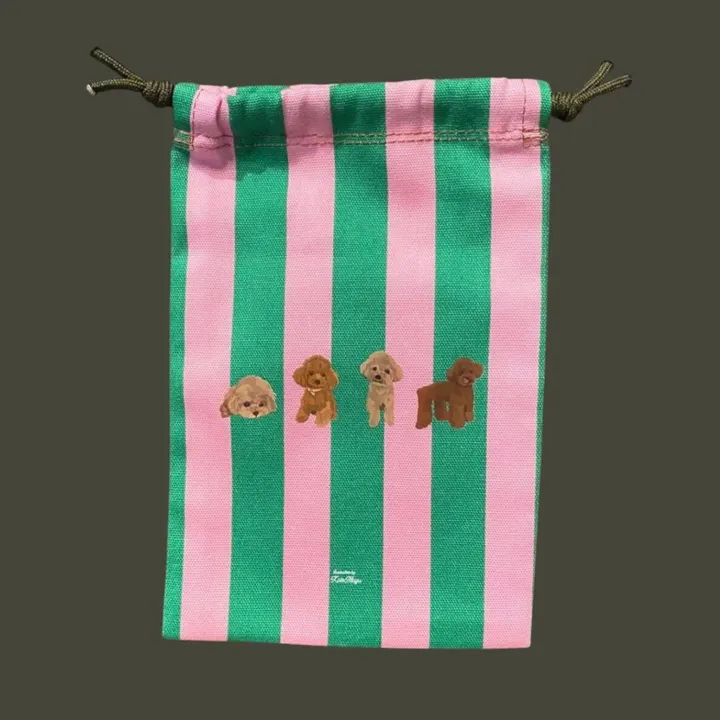 【縦長巾着】オリジナルイラスト スマホも入るサイズ わんこ巾着 トイプードル (約175mm × 120mm)