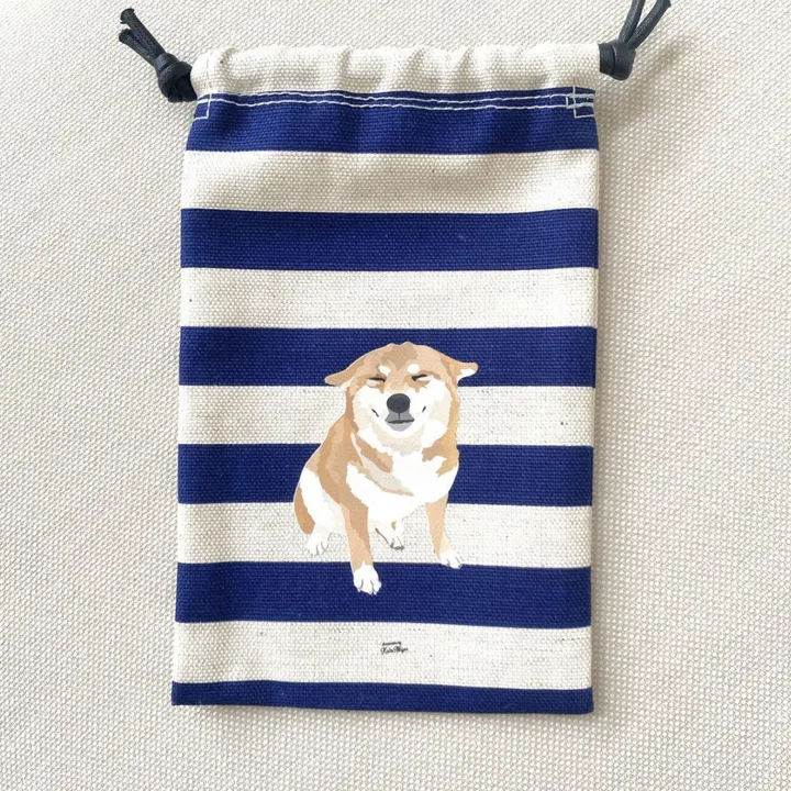 【縦長巾着】オリジナルイラスト スマホも入るサイズ わんこ巾着 柴犬