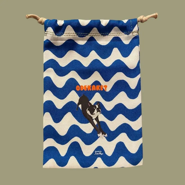 【縦長巾着】オリジナルイラスト スマホも入るサイズ わんこ巾着 ボストンテリア
