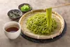 お茶は京都府宇治市の宇治抹茶のみを使用しております。他の産地の茶葉と併せ「宇治抹茶使用」とする商品もございますがこの商品は「宇治抹茶のみ」です。  宇治抹茶の香り味わいを引き立てるために蕎麦粉は更科そば用と同じく「そばの実」の中心部を挽いた蕎麦粉を使用しております。  発売開始当初は季節商品でしたがご好評につき通年で業務用・個人のお客様向け共に製造・販売しております。
