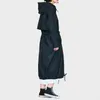 街着やビジネスシーンに合わせやすい、ロング丈のレインコート。 独自メンブレン「BARRIER EFFECT.」は十分な耐水性を備え、水分含浸を防ぎつつ、高い透湿性によって衣服内の蒸れを素早く解消してくれる。 驚くほど薄くて軽く、さらっとした肌触りが特徴の生地によって長時間快適な着心地を実現。背中のベンチレーションやフード・ウェスト・裾のドローコードはフィット感の調節だけでなく自由なシルエットを楽しむためのアクセントにもなっている。 左右にスナップボタンのハンドポケット、本体は左ポケットに畳んで収納可能なパッカブル仕様で持ち運びも容易。