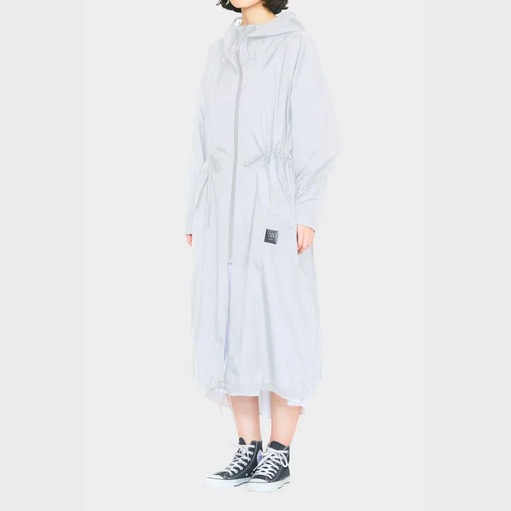 街着やビジネスシーンに合わせやすい、ロング丈のレインコート。 独自メンブレン「BARRIER EFFECT.」は十分な耐水性を備え、水分含浸を防ぎつつ、高い透湿性によって衣服内の蒸れを素早く解消してくれる。 驚くほど薄くて軽く、さらっとした肌触りが特徴の生地によって長時間快適な着心地を実現。背中のベンチレーションやフード・ウェスト・裾のドローコードはフィット感の調節だけでなく自由なシルエットを楽しむためのアクセントにもなっている。 左右にスナップボタンのハンドポケット、本体は左ポケットに畳んで収納可能なパッカブル仕様で持ち運びも容易。