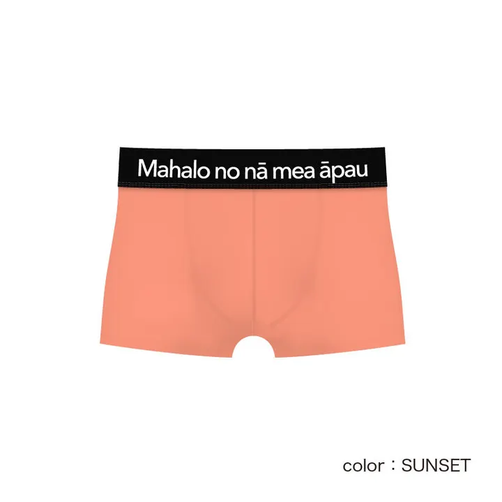 シルクのようにやわらかいバンブーコットンを使用した肌に優しいアンダーウェアブランド。 竹繊維で作られたサステイナブルな素材はふわふわな肌触りでまるで履いてないようななめらかさ。 一度履いたらやみつきなる肌心地は Haawi でしか味わえません。 履いた瞬間の程よいフィット感と伸縮性が、身体にフィットし心地よいホールド感を保ちます。 見えないからこそ、こだわりを。 Rainbow stateとも呼ばれるハワイのシンボルであるレインボーカラー6色と ベーシックカラー2色を加えた8色でご用意。 サイズはS、M、Lの3サイズ。 大切な人やご自身への想いをメッセージにのせてハワイ語のプリンティングバンドがアイコン。 プリンティングバンドは5種類からお選びいただけます。 ナチュラルなレインボーカラーで展開の為、ジェンダーレスでお選びいただけます。 [カラー] SUNSET (サンセット) ※お使いの端末のディスプレイモニター(画面)や部屋の照明等により実際の商品と色味が異なる場合がございます。