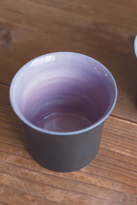 側面はサラサラとし内側はツルツルとした質感。淡い色合いのグラデーションが美しいカップです。お手入れが簡単な磁器製で食洗機や電子レンジもご利用いただけます。