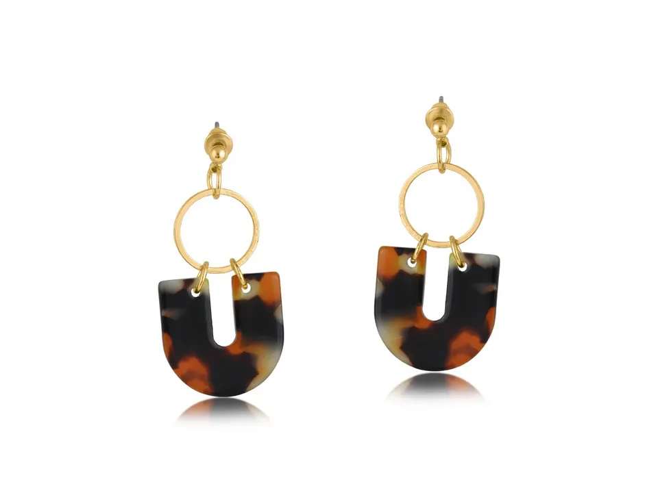 2991 Hortense メタル&レジン ジオメトリック ステートメントスタッドピアス ORANGE BLACK