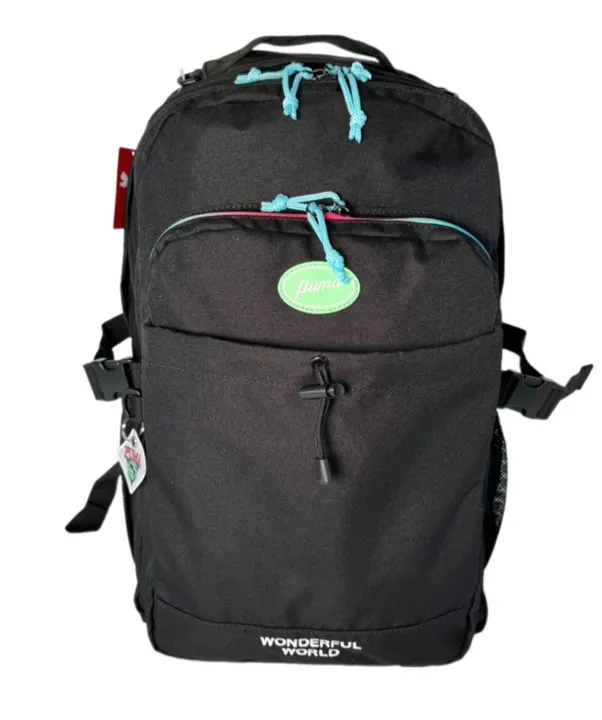 15インチPC収納可。 オリジナルチャーム付き。 外ファスナーポケット付き。 メッシュポケット2個付き。