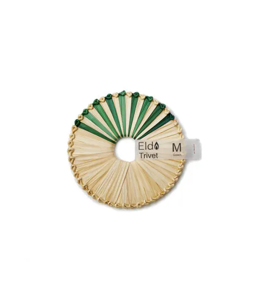 江戸時代の旅支度に欠かせなかった編み笠の材料”菅(スゲ)”が使われており、かつて釜敷きにも使われた菅は熱に強く、防水透湿性も非常に高い素材です。 水が降りかかると撥水性のある繊維がはじき、湿気が多ければ編んだ菅が膨らんで内部に通さず、乾燥すれば菅が戻り、自然に風通しが良くなる優れもの。 ご家庭に合わせて使いやすいサイズとお好みのカラーをお選びいただけます。 EldスキレットMや片手鍋に最適なMサイズ。 ベージュ色のプレーンを基調とし、アクセントとしてポトペリーオリジナルカラーのグレーとグリンを配色しました。 深江菅細工 大阪は深江の伝統工芸品で、江戸時代の旅支度に欠かせなかった編み笠の材料”菅(スゲ)”。 手作業で丁寧に編み込まれた編み目、昔ながらの技法で染められた差し色は、ひとつひとつ風合いが異なり、使い込むほどに愛着がわく逸品です。かつて釜敷きにも使われた菅は熱に強く、防水透湿性も非常に高い素材です。 菅本来の色が楽しめるプレーン2種類の他、ポトペリーオリジナルカラーのグレーとグリーンがございます。