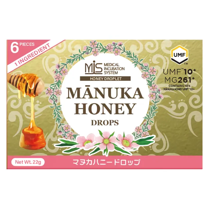 原材料はマヌカハニーだけ! 砂糖や水飴は一切使用せず、特許製法で純粋なマヌカハニーをそのままドロップ状に固めました。MIS薬剤師チームが開発・推奨する、安心・高品質なのど飴です。 【商品特徴】 ・原材料はニュージーランド産マヌカハニーのみ ・砂糖・水飴不使用(特許製法) ・ニュージーランド産マヌカハニー使用 ・国際品質基準「UMF」認定(UMF10+) ・MIS薬剤師チームによる開発・推奨 【お召し上がり方】 ・のどの乾燥が気になるときに ・スポーツ中の自然な栄養補給に ・持ち歩いて手軽な健康サポートとして 【注意事項】 ※1歳未満の乳児には与えないでください。