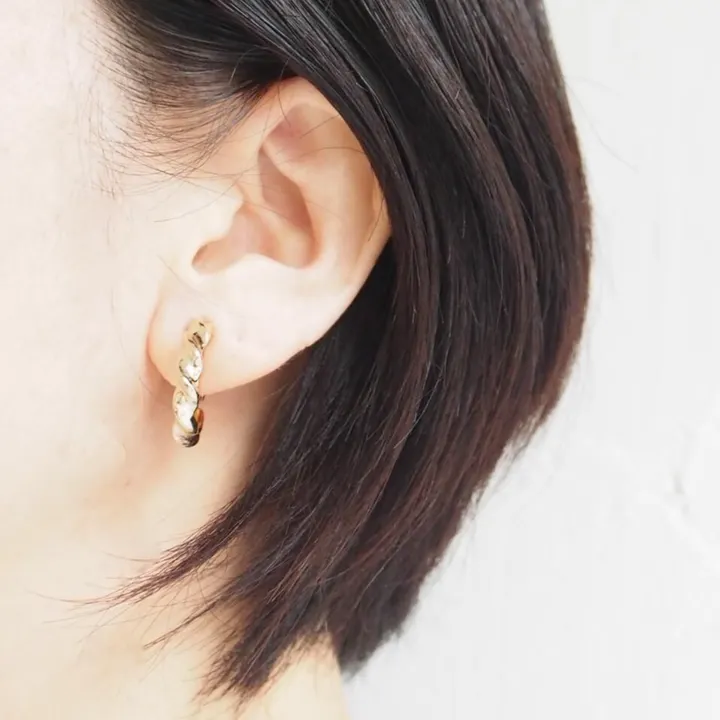 イヤリング【Modern】/ツイストフープイヤリング イヤリングでは希少なフープデザイン 滑らかさを際立たせるツイスト加工が シンプルなフォルムのアクセントに アンティークショップで目にするような、クラシカルなイヤリングを揃えたコレクション。 デイリーからセレモニーまで幅広いシーンにお使いいただける シンプルながらもOucaらしいアクセントの効いたアイテムが揃います。 過去展開していたフープイヤリングシリーズのリニューアルモデル。 板バネ式の金具を、お使いいただきやすく人気のクリップタイプの金具に変えることで、 耳の厚みに応じたサイズ調整が自在になり、安定感のある付け心地をお楽しみいただけます。 ◆詳細◆ 程良いボリュームとリュクスなヴィンテージテイストあふれる、滑らかなツイストが美しいイヤリング。 地金のみのフープタイプも金具を変えて再登場です。 ゴールドカラー単色でありながらシンプルすぎないデザインと、耳元に心地よく収まる程よいサイズ感は シーンを選ぶことなく活躍してくれる頼れるアイテムです◎ 金具はクリップタイプ。 シリコンカバーも装着しやすく、快適にお使いいただけます。 商品には専用のBOXが無料で付属しますので、ギフトにも最適です◎