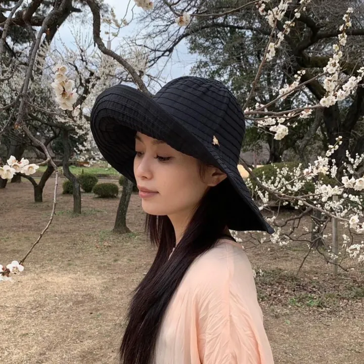 つば広のお帽子です。日焼け、眩しさが苦手な方にお勧め。見た目が華やかに見えるのでノーメイクにサングラススタイルでも自信が持てるハットです。 夏のバカンスに大活躍です。 頭周り56cm (サイズ調整機能付き) つば長さ 12cm クラウン 12cm