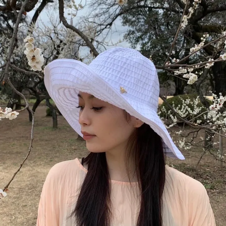 つば広のお帽子です。日焼け、眩しさが苦手な方にお勧め。見た目が華やかに見えるのでノーメイクにサングラススタイルでも自信が持てるハットです。 夏のバカンスに大活躍です。 頭周り56cm (サイズ調整機能付き) つば長さ 12cm クラウン 12cm