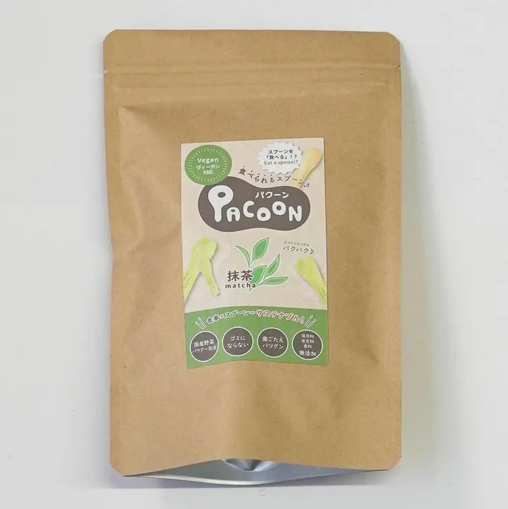 【食べられるスプーン】PACOON パクーン 着色料・添加物不使用 (40袋入り/ケース単位) ヴィーガン 抹茶 5本入り