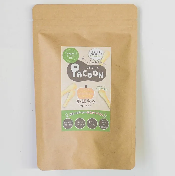 【食べられるスプーン】PACOON パクーン 着色料・添加物不使用 (40袋入り/ケース単位) ヴィーガン かぼちゃ 5本入り