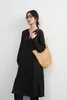 KNXO513/軽やか素材綿混シアー長袖チュニックワンピ・レイヤードに便利・体系カバー BLACK/FREE