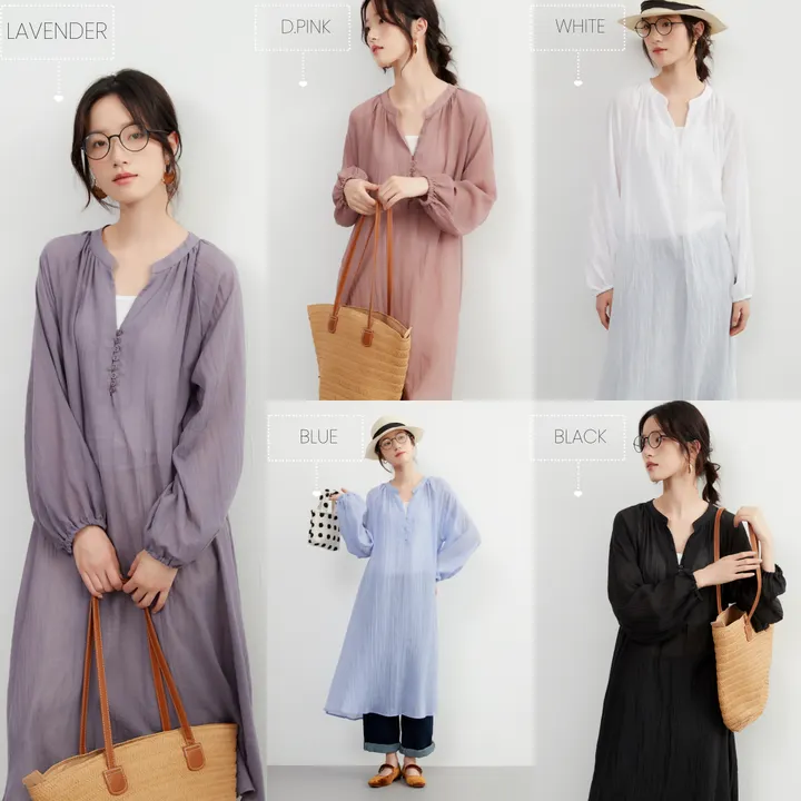 特徴 この長袖シアーチュニックは、軽やかな素材とゆったりとしたシルエットが特徴です。体型をカバーしながらも、透け感のあるデザインで涼しげな印象を与えます。シンプルでありながらもスタイリッシュな一着です。 生地の特徴 高品質な綿混素材を使用しており、通気性が良く、肌触りも柔らかです。軽量なので旅行やお出かけの持ち運びがお手軽。夏の暑い日でも快適に着用でき、陽射し対策としても熱くない。 コーディネートの提案 このシアーチュニックは、レイヤードスタイルに最適です。インナーにタンクトップやキャミソールを合わせることで、その透け感を活かしたおしゃれなコーディネートが完成します。ボトムスには、デニムパンツやワイドパンツを合わせてカジュアルなスタイルに。また、レギンスやスリムフィットのパンツと合わせてエレガントなスタイルを楽しむこともできます。足元はサンダルやスニーカーで軽やかに仕上げるのがおすすめです。 単位(cm)モデル身長165cm サイズ FREE  着丈 110 バスト 102 裄丈 78 素材:ポリエステル80% 綿20% 中国製 透け感:あり 生地の厚さ:薄い 光沢感:なし 裏地:なし 家庭洗濯:可能(ネット使用) 【注意点】 ※撮影商品はサンプルの為、実際の仕様と異なる場合がございます。 ※画像の商品は光の照射や角度、お使いのモニター環境により、実物と色味が異なる場合がございます。スタジオ物撮りの画像が実物の色味に一番近くなっております。 ※予約商品の場合、お届け予定はあくまでも目安となります。 生産の都合上、お届け時期がずれる場合がございますので、あらかじめご了承ください。 ※表記サイズは商品の実寸です。 ※布製品の特性上、サイズ表の実寸法は多少の誤差が生じる場合がございますので、予めご了承ください。