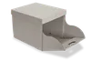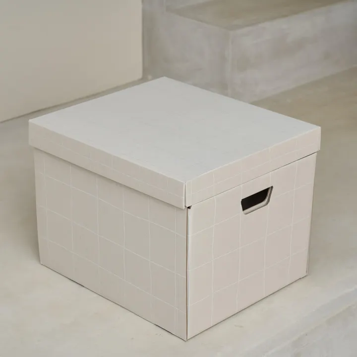 フタを開けずにいつでもスイスイ出し入れできる 気楽な収納ボックス 前面が可動式になっており、上部のフタをしたまま物を出し入れ出来ます。 「あの箱の荷物を取りたい」「これをあの箱に入れたい」 そう思った時に、いちいち箱を持ち上げたり引っぱり出したりする必要がありません。 A4サイズの書類も入るサイズで、出し入れが多いアイテムの収納にピッタリ。 おもちゃや日用衣類、よく使う食品のストック、こまごまとした雑貨など 散らかりやすい物もスッキリ片付きます。 素材には100%リサイクル紙を使用し、環境にも配慮しています。 ご使用後は段ボール資源としてリサイクルに出すことが可能です。 パッケージにもこだわり、従来の素材と比較し燃焼時に発生するCO2が削減されるものを選びました。