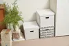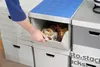 フタを開けずにいつでもスイスイ出し入れできる 気楽な収納ボックス 前面が可動式になっており、上部のフタをしたまま物を出し入れ出来ます。 「あの箱の荷物を取りたい」「これをあの箱に入れたい」 そう思った時に、いちいち箱を持ち上げたり引っぱり出したりする必要がありません。 A4サイズの書類も入るサイズで、出し入れが多いアイテムの収納にピッタリ。 おもちゃや日用衣類、よく使う食品のストック、こまごまとした雑貨など 散らかりやすい物もスッキリ片付きます。 素材には100%リサイクル紙を使用し、環境にも配慮しています。 ご使用後は段ボール資源としてリサイクルに出すことが可能です。 パッケージにもこだわり、従来の素材と比較し燃焼時に発生するCO2が削減されるものを選びました。