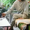 リサイクルコットンは端切れを色ごとに集めて再利用します。つまり染色が不要となり、ここでも大量の節水に繋がります。