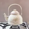 【imane premier】優しいクリーム地にローズバスケットとピンクの吹きがあしらわれたホーローのケトル。 『100年経っても素敵』と思わせるレトロな風合いにこだわりを詰め込みました。 かわいらしいサイズで、女性の手でも取り回しやすい大きさ。 キッチンの空間にもすんなり馴染みます。ストーブの上やキャンプにもぴったりのかわいらしさ。 注ぎ口はお湯の量を簡単に調節しやすい形。見た目以上に容量たっぷりで、一度にマグカップ4~6杯分を沸かすことができるのも嬉しいポイント。 持ち手までこだわりのホーロー製。手にフィットするようカーブしていて細かなところまで丁寧に作っています。 ※火にかけると持ち手が熱くなるため、ミトンなどをお使いください。 【ホーロー(琺瑯)の特徴】 金属とガラス、全く違う素材を結合させたホーローはそれぞれの良い面が生かされ、「ホーローならでは」の優れた特徴があります。 ・優れた耐久性、耐熱性、耐酸性 ・においが付きにくく抜群の非吸着性、清潔感 ・高い保温性で熱を逃さない ・美しい色合いと光沢が魅力 ■商品について イマンの商品はアンティークのような柄をほどこしている手作りの商品になります。 手作業で一つ一つ丁寧に柄つけておりますが、角度や位置等に若干の差がございます。 ■ホーロー製品 対応熱源:ガス、IH ※電子レンジ不可 ※加熱中や加熱直後は取っ手やフタが大変熱くなり火傷の危険がありますので、必ずミトンやふきん等のご使用をお願いします 【下記の場合は不良品ではありませんのでご注意ください】 ・ホーローの溶接部分や縁などに出る黒い部分は下地のホーローです。この部分はホーローがかかりにくいためこの様になります。 ・ホーローを焼く時に吊るすため、吊るしたあとが残る場合があります。 ・焼く際に細かな黒い点がつく場合やピンでつついたような小さな陥没がある場合もございますが、ご了承の程お願いいたします。 ・釉薬がかかりにくい部分は色ムラや凸凹、フタのズレ、素材や下釉薬が見られることがあります。 ■手作りのため若干サイズが変わる場合があります。 ■撮影環境の関係上、実際の色と多少異なる場合があります。 ■販売商品以外のアイテムは付属しません。 ■他サイトにも掲載しています。在庫状況が変動する場合があります。 ■在庫数以上をご希望の場合は、お気軽にお問い合わせください。 ■商品は予告無く欠品・廃番となることがございます。ご了承ください。 ■イベント出展、夏季・冬季休業時は出荷予定日より長くかかってしまう場合がございます。  (お知らせにて掲載します。ご確認ください。)