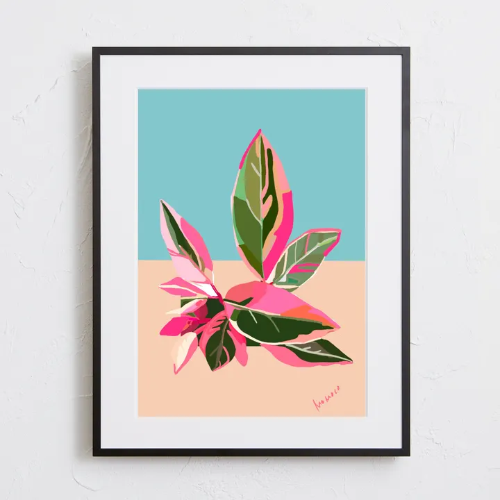 【現代アートポスター】ボタニカル 観葉植物 ナチュラル ポップイラスト A4(S) フレームセット:黒 29.4×38.4cm