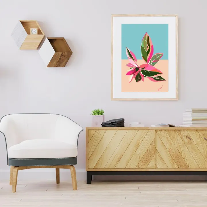 【現代アートポスター】ボタニカル 観葉植物 ナチュラル ポップイラスト A2(L) フレームセット:無垢 56.1×74.3cm
